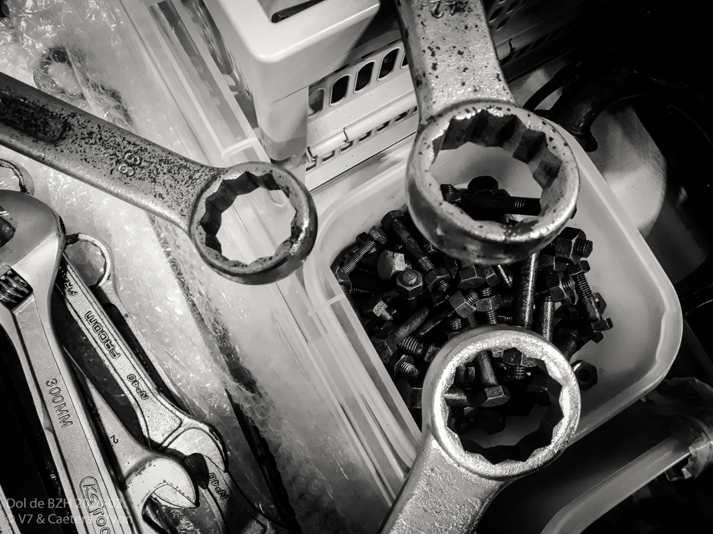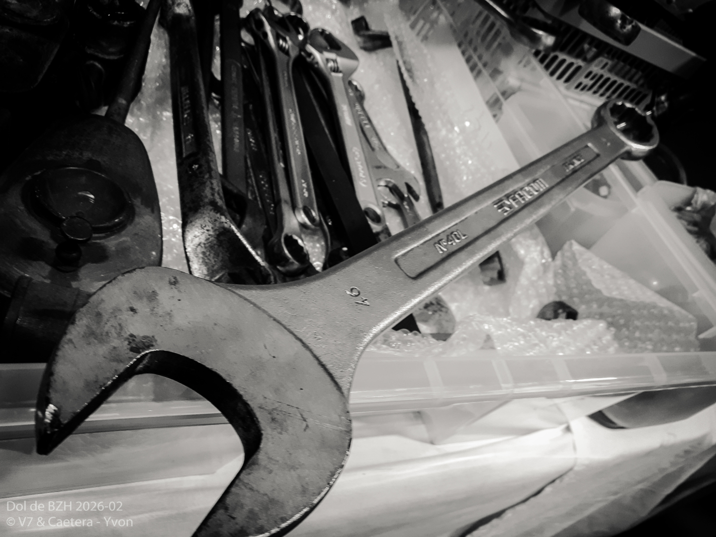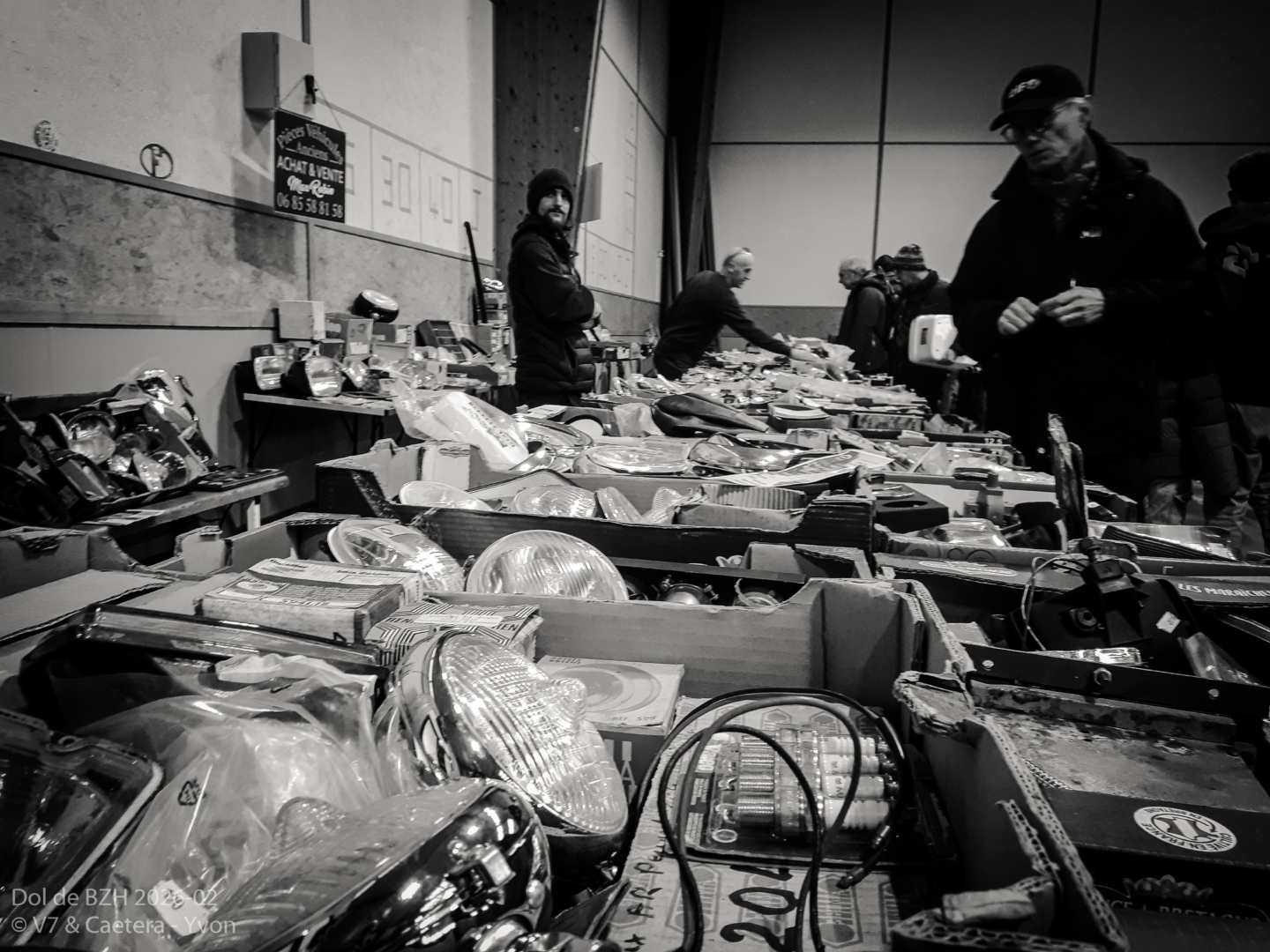 La Bourse « Auto-Moto » de Dol de Bretagne, en dehors de tout besoin de pièces pour des « anciennes » est un moment esthétique pour admirer les formes et les couleurs des objets « anciens ». L’ingéniosité des humains n’est pas en reste quand on regarde la complexité de certains outils, qui n’en sont pas moins efficaces chacun dans leur domaine. Extracteurs de roulements, pinces aux formes improbables et autres tournevis à visser dans les coins.